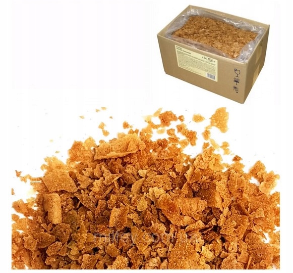 Pokruszone chrupiące „crepe dentelle”, o złocisto-brązowej barwie oraz delikatnym smaku karmelu i wanilii.