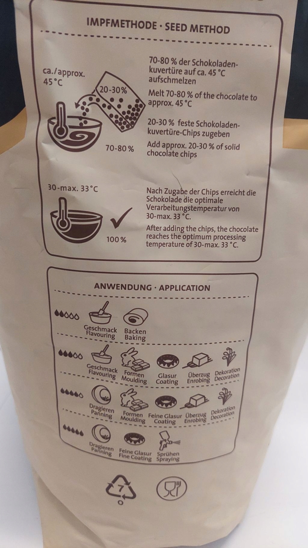 Idealnie nadaje się do tworzenia past, nadzień, musów, pralin oraz przy tworzeniu dekoracji.
