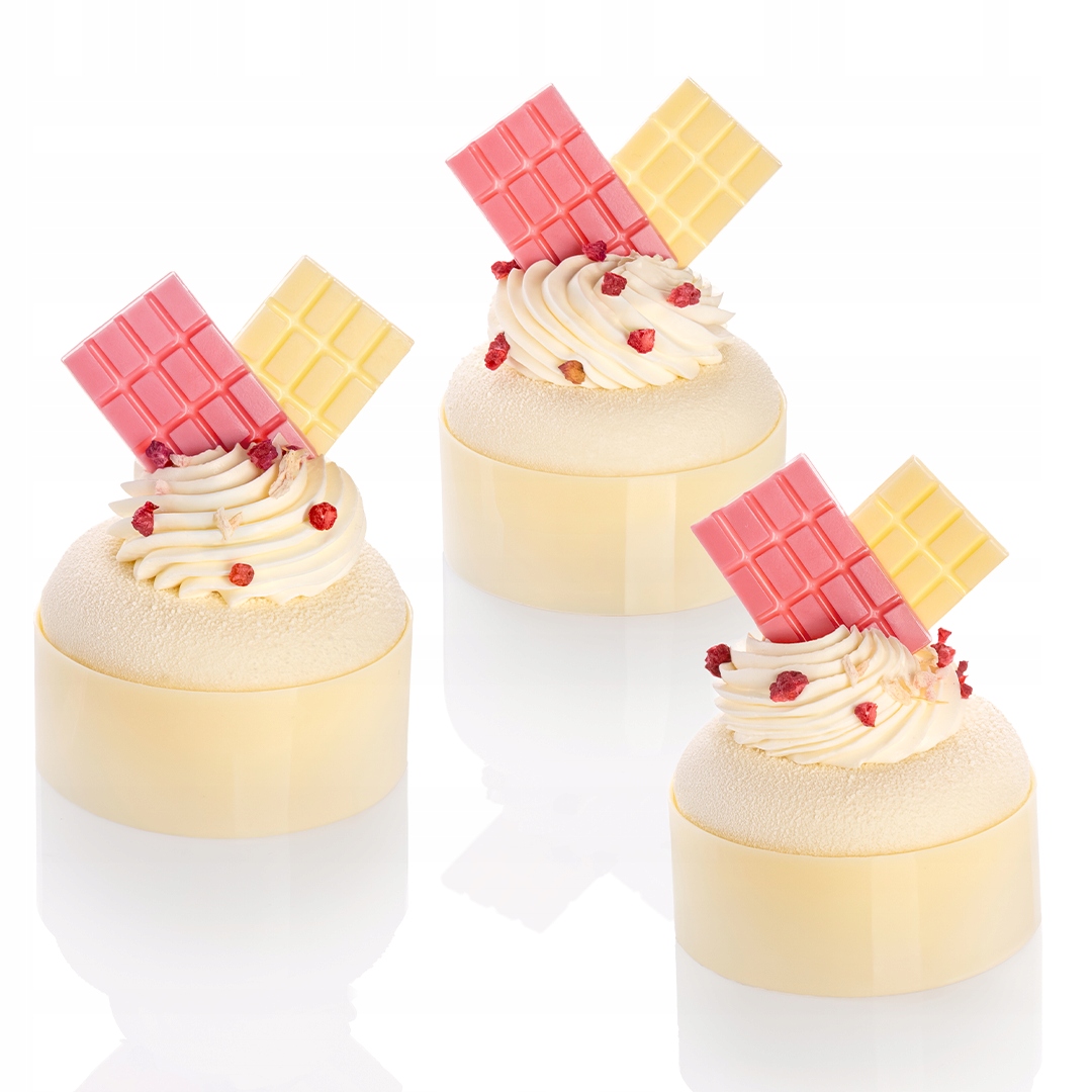 „Mini tabliczka czekolady” to dekoracja wykonana z wysokiej jakości białej czekolady, jedna naturalnie biało kremowa a druga barwiona na kolor różowy. Klasyczna forma małej tabliczki o wymiarach 26 x 44 mm sprawia, że z łatwością można je umieścić na słodkich przysmakach, podnosząc tym samym ich atrakcyjność wizualną. Tradycyjny kształt, kolorystyka i możliwość łamania na kawałki pozwalają na szerokie wykorzystanie w dekorowaniu tortów, lodów, ciast i deserów. Dekoracje będą doskonałym uzupełnieniem dla wszelkiego rodzaju ciast, deserów oraz innych wypieków cukierniczych.