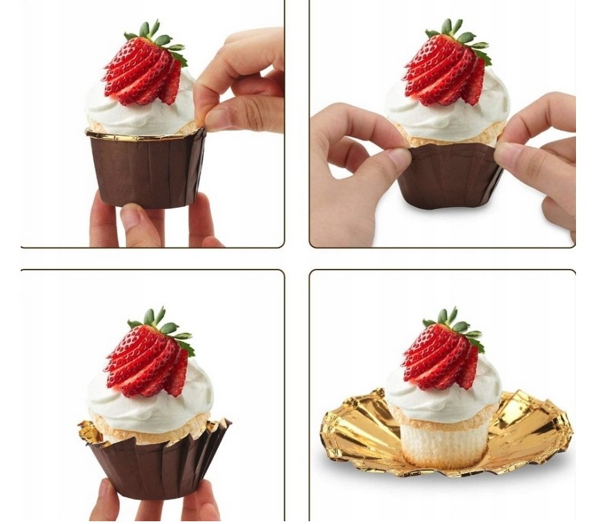 Foremki Papilotki na Muffinki do Pieczenia Babeczek Brązowo-Złote 50 Sztuk