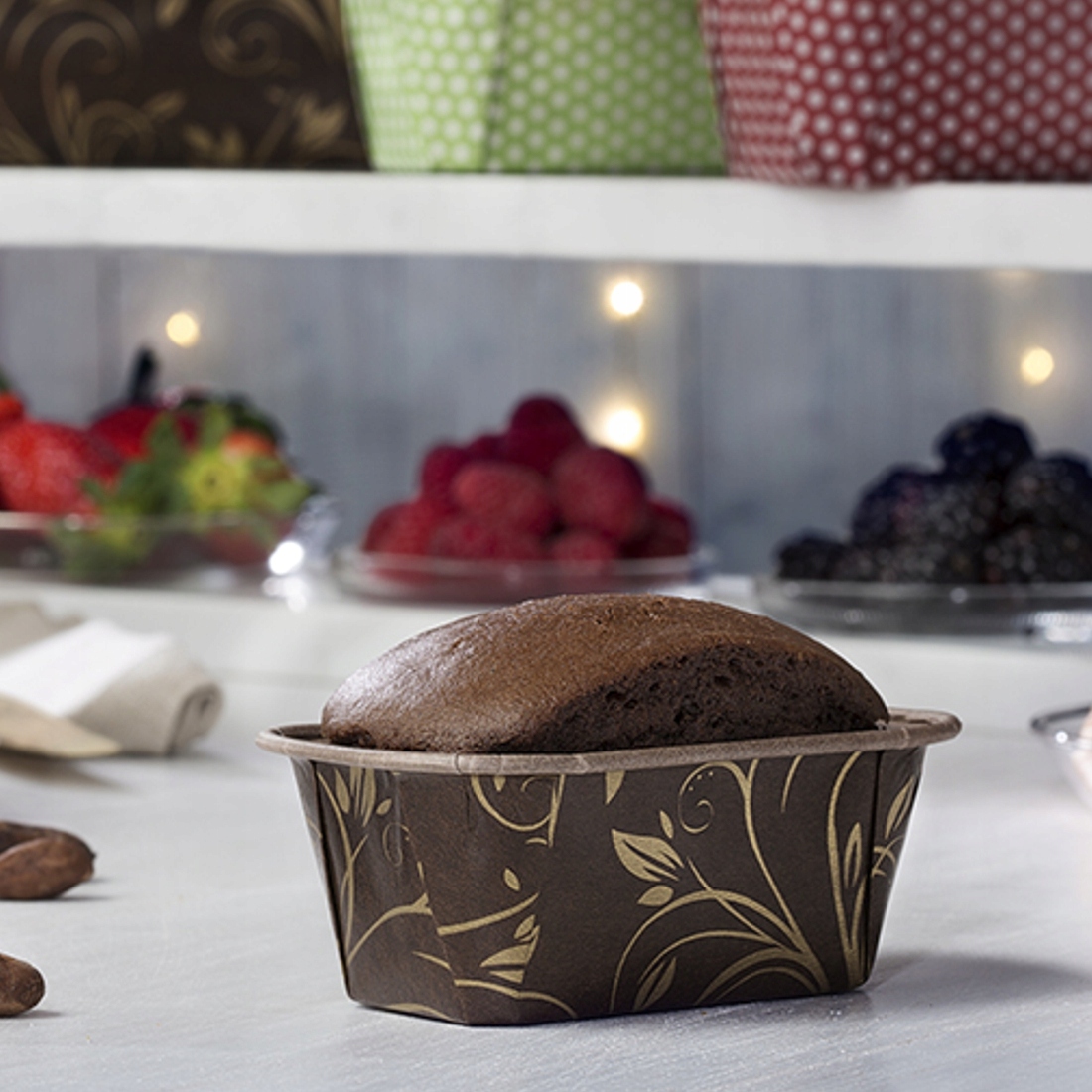 Prostokątna, papierowa foremka do pieczenia Plumpy, stworzona też z myślą o poprawie komfortu domowego wypiekania.