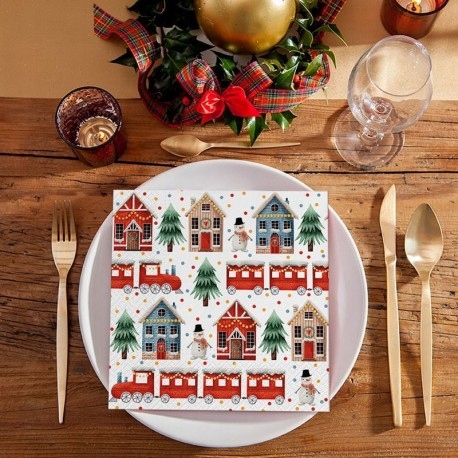 - Motyw Świąteczny: Serwetki ozdobione są uroczym motywem świątecznym, co sprawia, że idealnie komponują się z atmosferą Bożego Narodzenia.