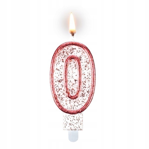 Świeczka w kształcie cyferki “0” biała z czerwoną obwódką, obsypana brokatem to elegancki i efektowny dodatek na każdą okazję – urodziny, rocznicę, jubileusz czy sylwestra.
