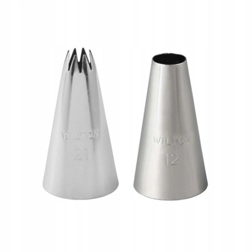 Zestaw tylek nr 12 i 21 marki Wilton to niezawodne narzędzia dla każdego miłośnika cukiernictwa. Dzięki nim udekorujesz ciasta, torty, muffinki i desery w wyjątkowy sposób. Pasują do wszystkich rękawów cukierniczych Wilton, co czyni je niezwykle praktycznym wyborem.